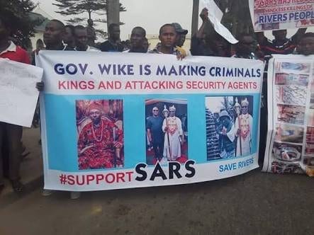 The Pro-SARS rally conveners claimed that the Rivers State Governor, Nyesom Wike, is empowering criminals and sponsoring campaigns against security operatives just to score cheap political points. They also claimed the Governor was rewarding criminals with traditional titles.