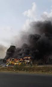 About 10 passengers were feared dead when fire engulfed a Toyota 18 seaters commercial bus ferrying over 14 passengers from Akwa Ibom to Port Harcourt at the popular Eleme refinery junction in Eleme, Rivers State, on Saturday.