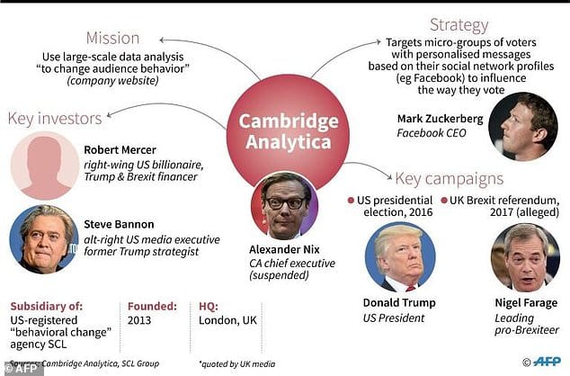 Authorities in Britain have meanwhile seized data from Cambridge Analytica in their investigation, and EU officials have warned of consequences for Facebook.