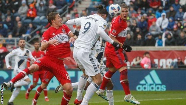 Zlatan Ibrahimovic scored on his first LA Galaxy start as they beat Chicago Fire in Major League Soccer.