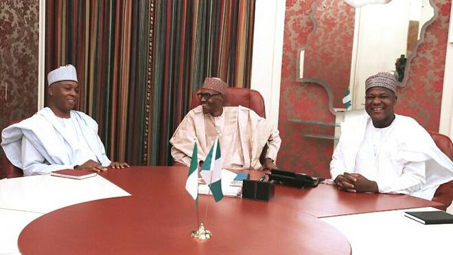 The President’s parley with Saraki and Dogara is coming at a time lawmakers were calling for impeachment of the President over the purchase of Super Tucano aircrafts at the cost of $496m without the approval of the parliament.