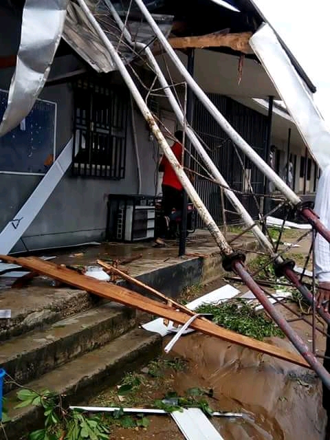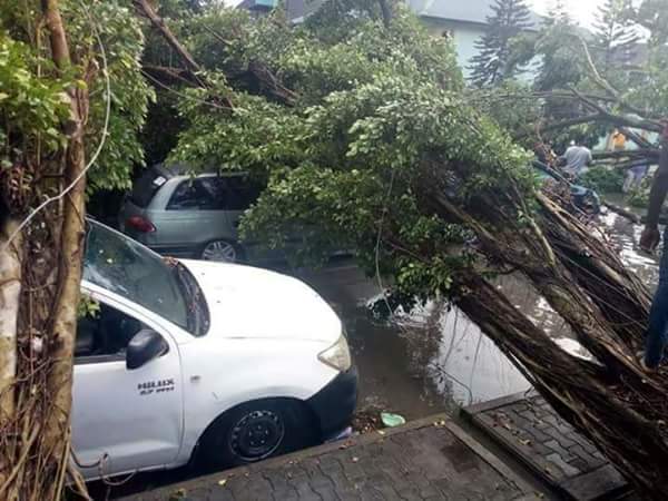 The rain which began a little after 2: Pm, also destroyed roofing sheets of several buildings including that of Emerald hotel at Rumuola.