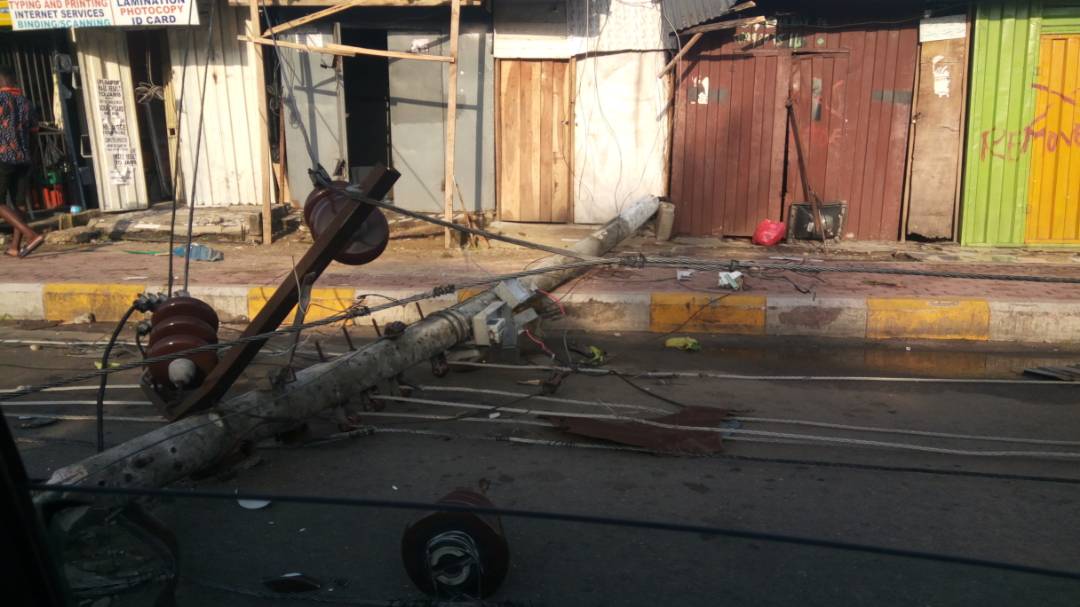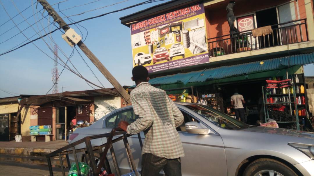 Several parts of Port-Harcourt city have been left in total darkness and properties worth millions destroyed after a heavy downpour on Monday, knocked down hundreds of electrical poles and disrupted distribution lines.