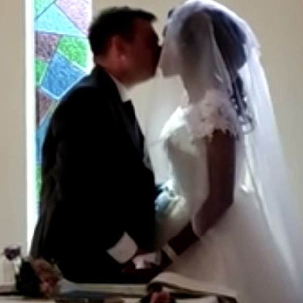 A short video clip from the ceremony shows the emotional moment the groom kisses the bride.