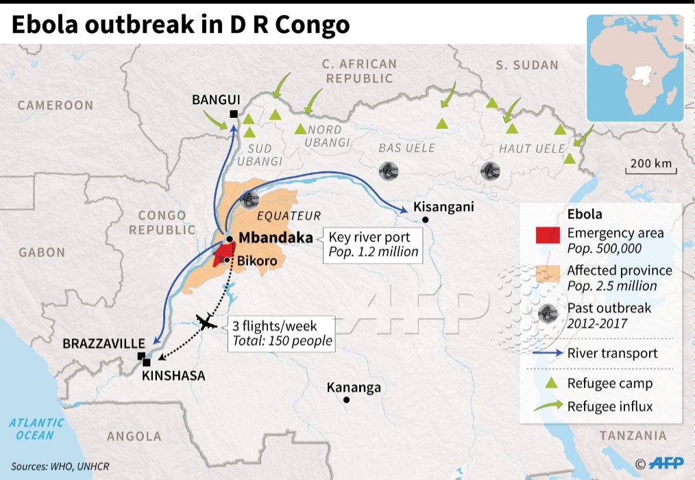 Amid anecdotal evidence of alarm among local people, a doctor at the city’s General Hospital, who requested anonymity, told AFP that more than 300 people in Mbandaka had had either direct or indirect contact with Ebola.