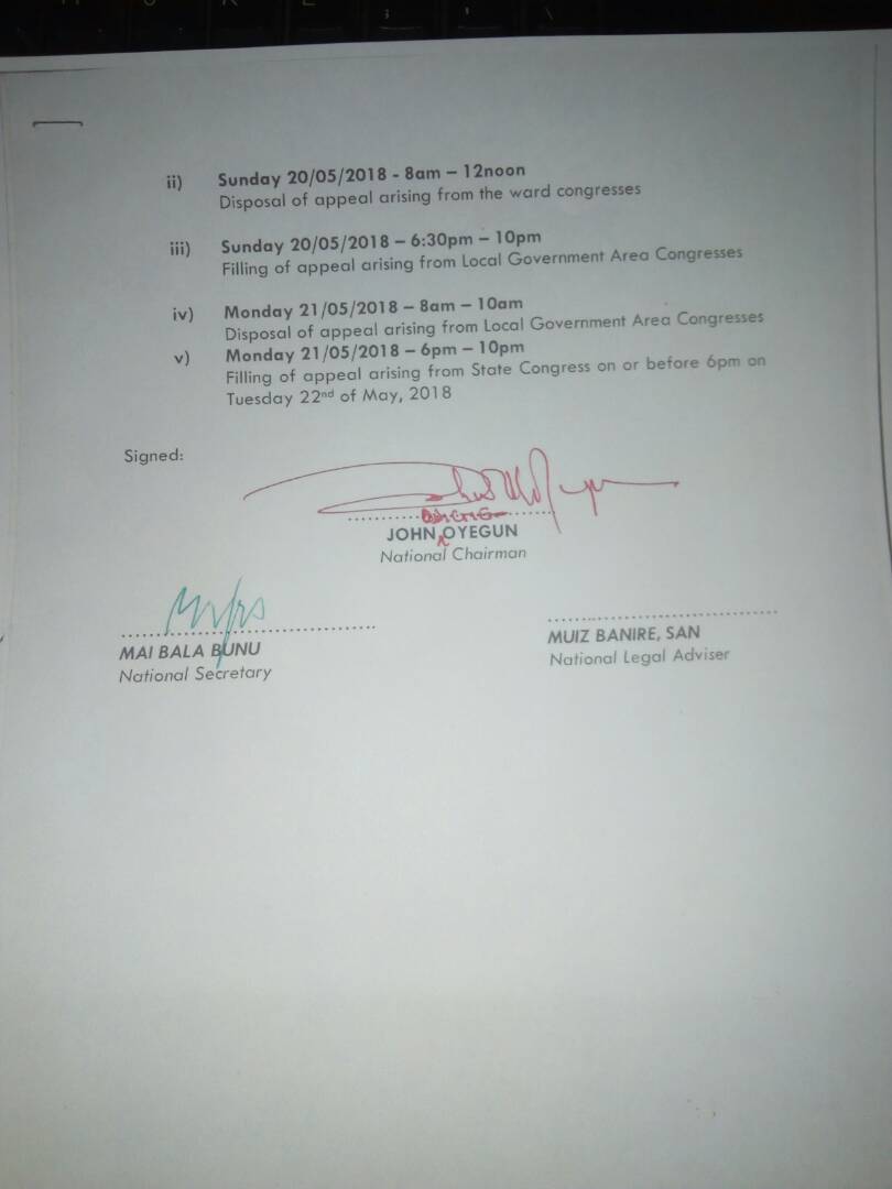Therefore, the new dates for the Ward Congress, LGA Congress and State Congress have now been fixed for Saturday May 19th for the Ward Congress, Sunday May 20th for the Local Government Congress and Monday 21st May for the State Congress.