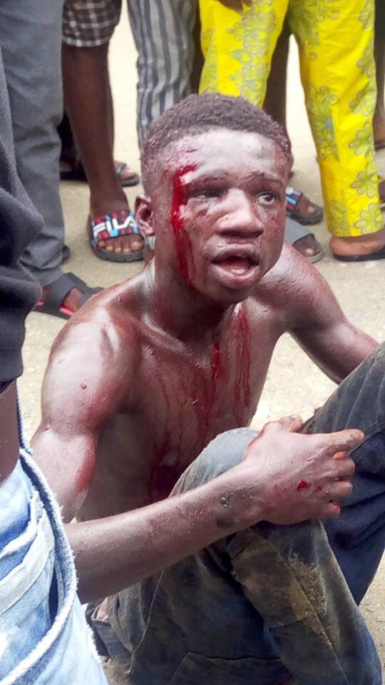 The man said to have been caught during a robbery operation was lynched and set ablaze by an angry mob minutes later.