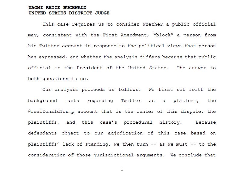 Buchwald’s ruling was in response to a First Amendment lawsuit filed against Trump in July by the Knight First Amendment Institute at Columbia University and several Twitter users.