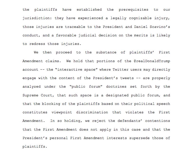 Buchwald rejected the argument by Justice Department lawyers that Trump’s own First Amendment rights allowed him to block people with whom he did not wish to interact.