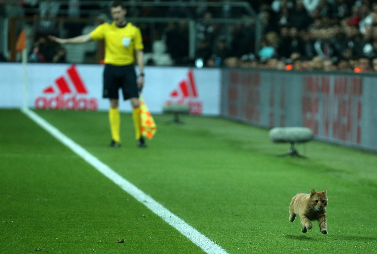 English referee Michael Oliver stopped play in the second half at Vodafone Park until the cat left the pitch.