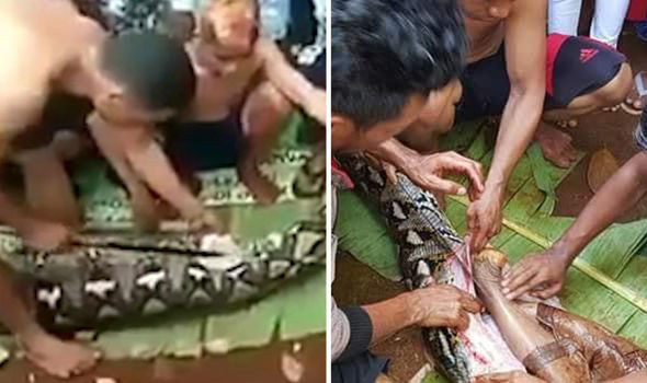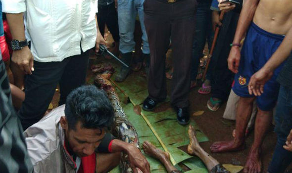 Local police chief Hamka said: “Residents were suspicious the snake swallowed the victim, so they killed it, then carried it out of the garden.