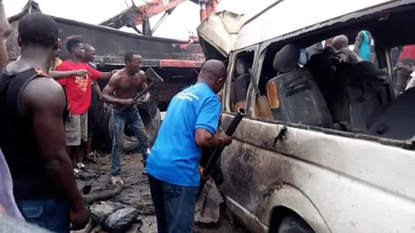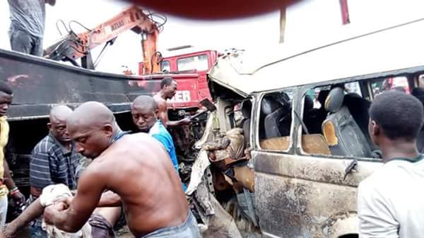 At least 13 persons died on Thursday morning along the Ogbakiri area of the East-West road when a Toyota Hiace Passenger Bus travelling to a yet to be identified destination rammed into a flatbed self-loader.