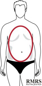 The shape of this body type is a big triangle with the base at the shoulders and the point at the belly button.