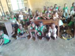 The teachers said they have primary five and six sharing one classroom. Not enough sits for children to sit and learn which has led to some of the children sitting on the floor to learn.