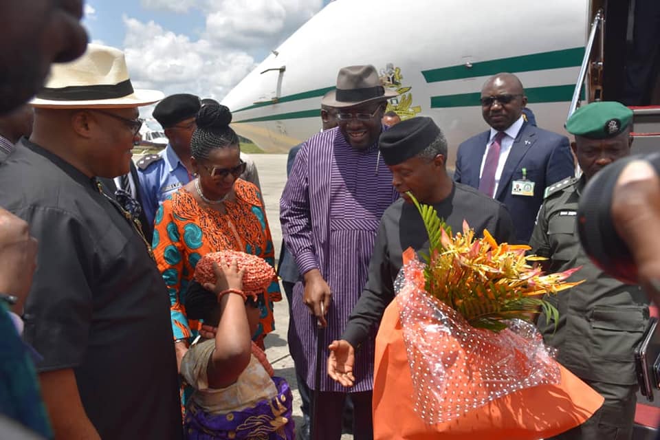 The Vice-President who was received by the Governor of Bayelsa State, Seriake Dickson and Rivers State deputy governor, Ipabilo Banigo was accompanied by Senator Magnus Abe.