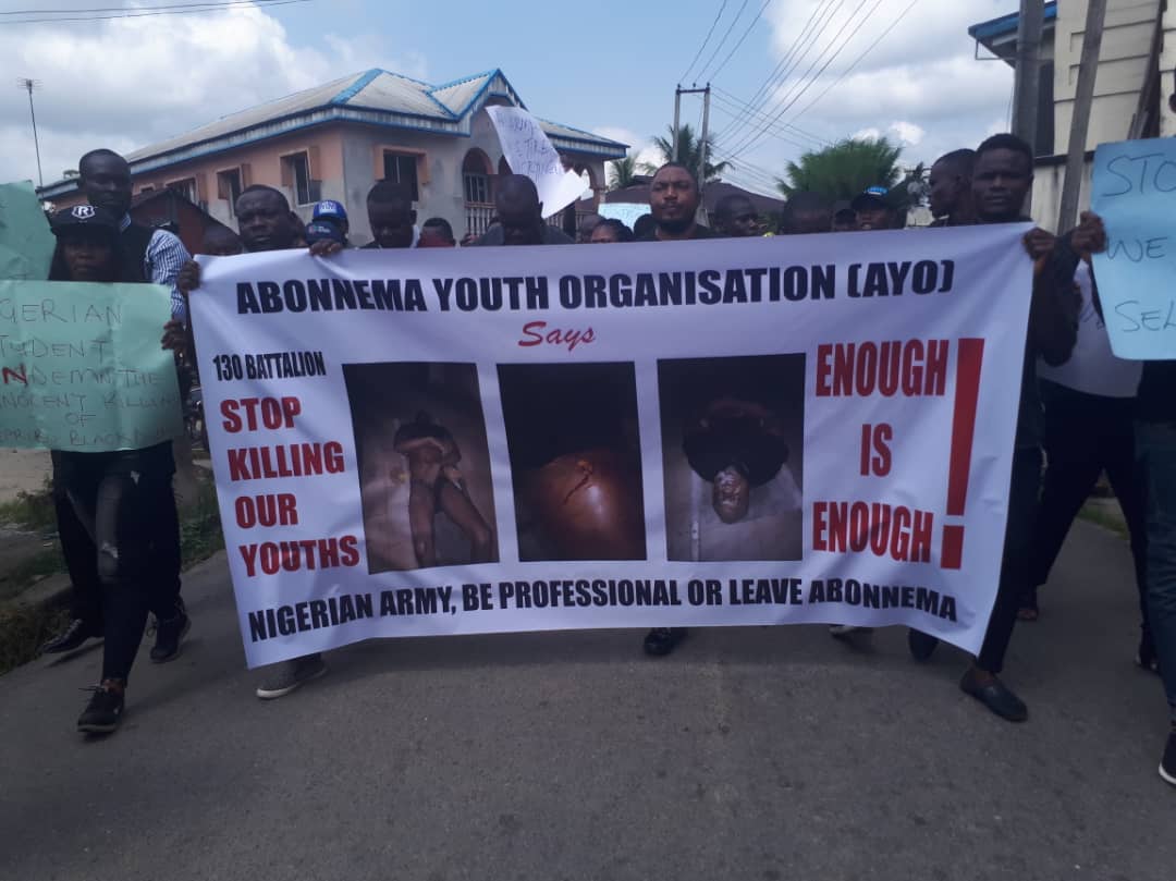 Youths in Abonnema in Akuku-Toru local government area have taken to the streets to protest the incessant killings of youths by the men of the 130 battalions of the Nigerian Army.
