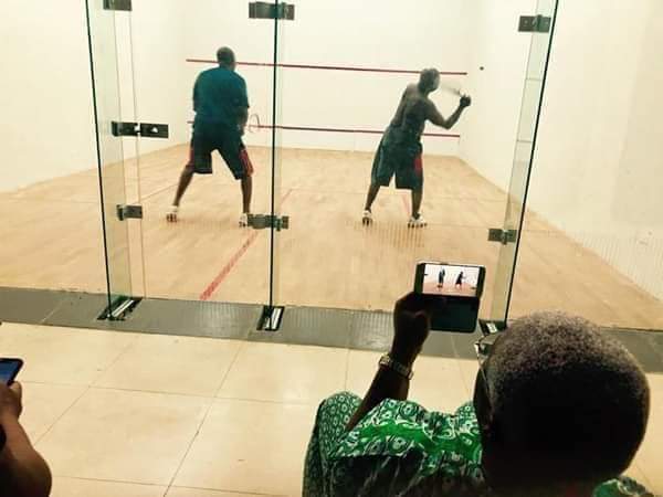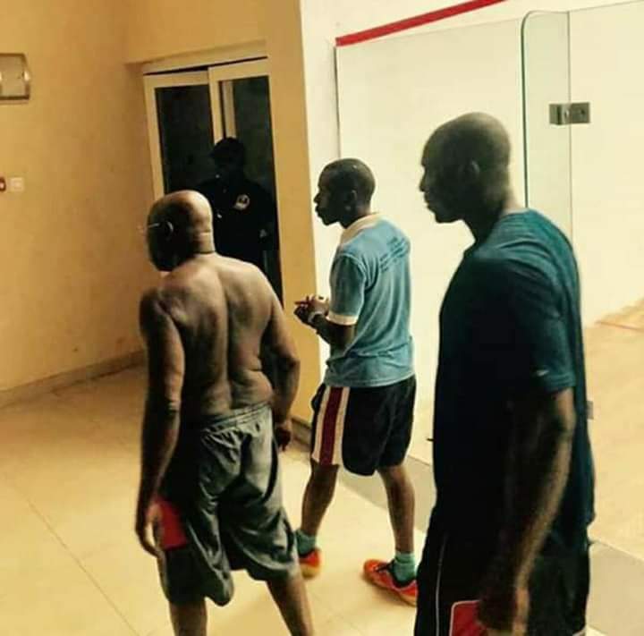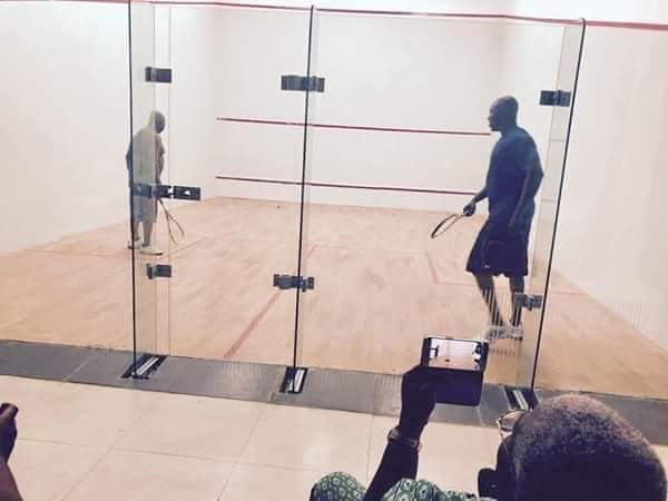 He was pictured without a Shirt playing Squash with his Son who is the newly appointed President of Buhari Youth Organization (BYO), at his residence in Abeokuta, Ogun State.