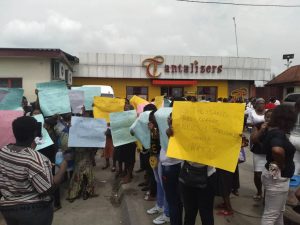 The protesters displayed placards with inscriptions like “Wike, must politics be about blood” and “13 thousand jobs now 13 thousand gun”