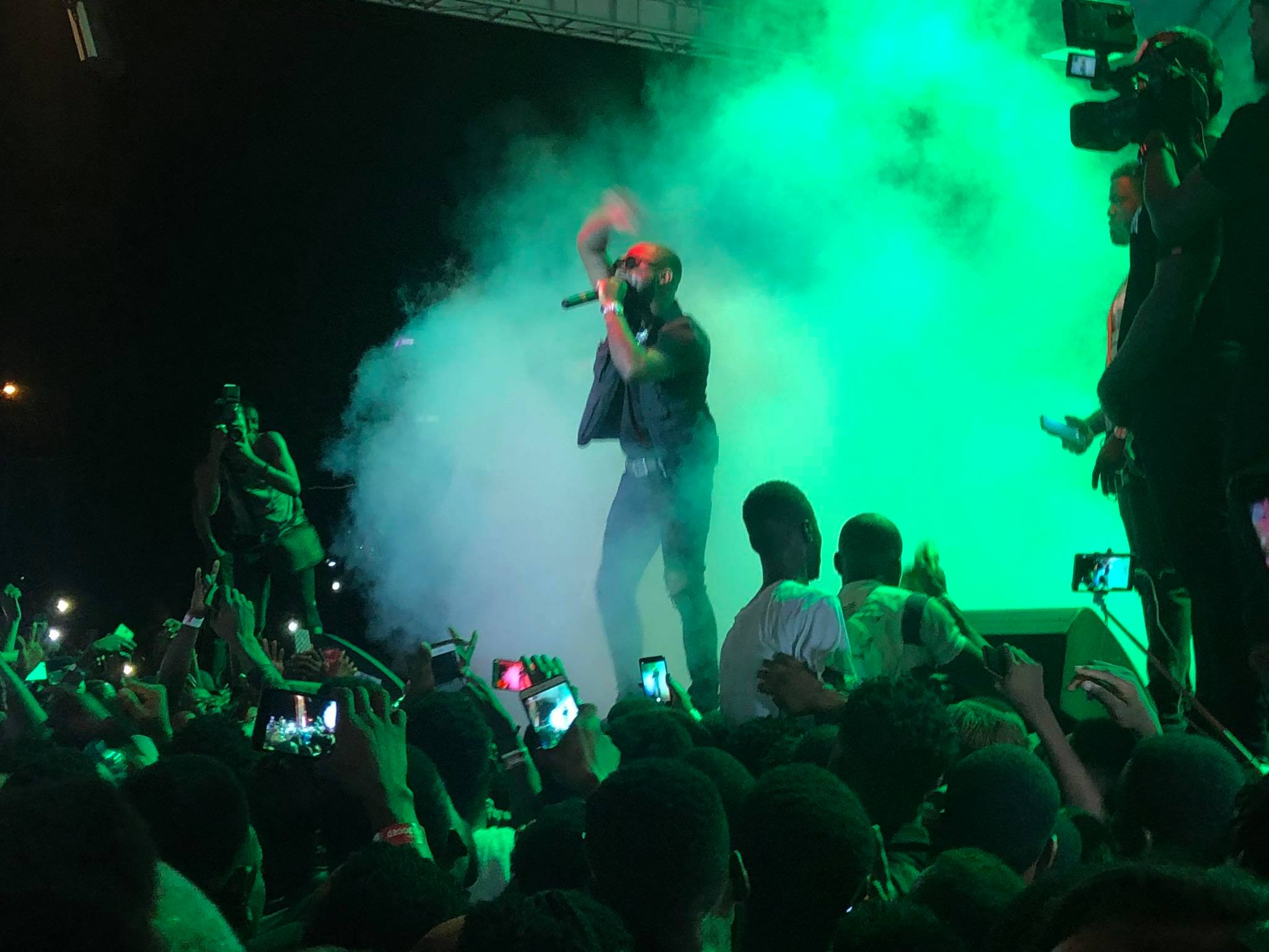 Reekado Banks endured while items were being thrown at him while on stage during the concert.