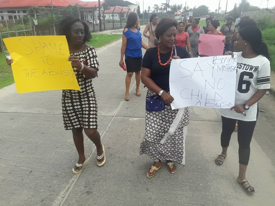 Angered by the continued molestation of children, women have taken to the streets to protest against an alleged child rapist in Bonny Island.