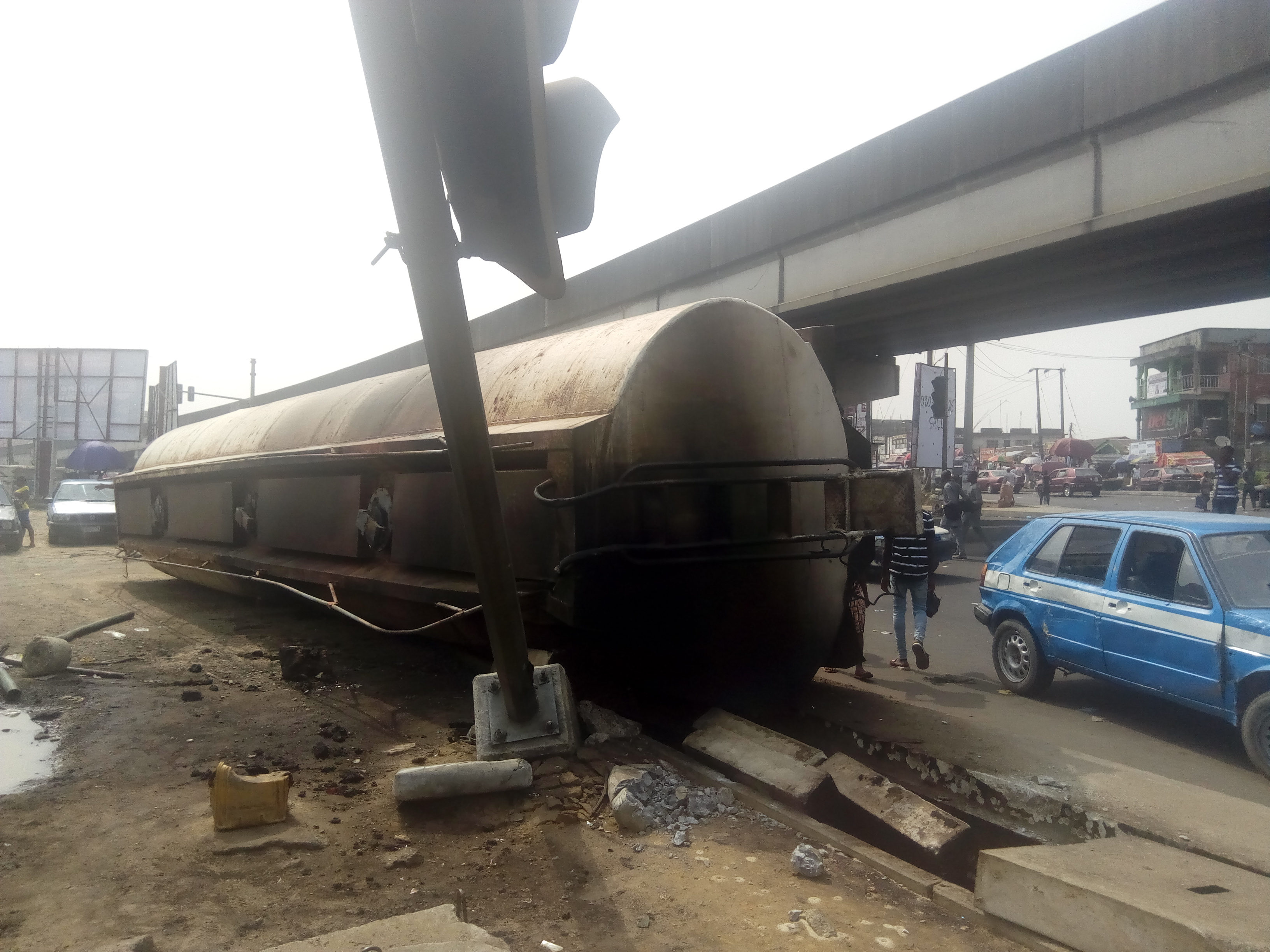 An eyewitness, Mohammad, who works as a cobbler at Rumuola fly over told theportcitynews that the driver of the loaded tanker lost control of the vehicle when he tried to avoid hitting passersby while trying to align his tanker on the PH/Aba express road.