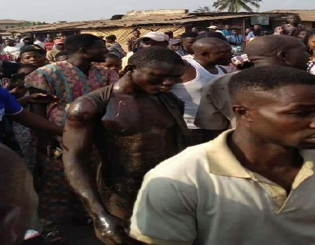 According to an eyewitness, the prophet was caught in the act by an elderly woman who raised the alarm which prompted youths in the area to capture him.