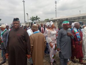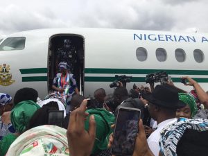 Thousands of supporters of the All Progressives Congress, APC, in Rivers State have gathered at the Port Harcourt International Airport and Yakubu Gowon Stadium to welcome the first lady of Nigeria, Aisha Buhari.