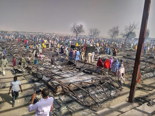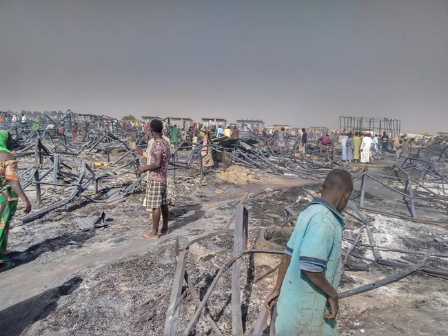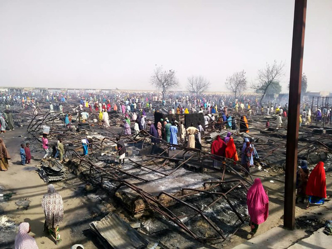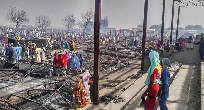 Three persons have been killed in a fire outbreak that occurred at an internally displaced persons (IDP) camp in Monguno, Borno State, Channels Television reports.