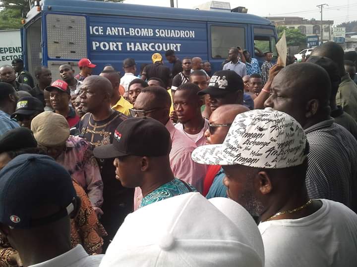 Among the chieftains who stormed the INEC office along Aba road include the gubernatorial candidate of the party, Tonye Cole; Nigeria’s ambassador to the Netherlands, Orji Ngofa and many others.