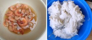 Soak the stockfish and dry fish with boiled water and wash thoroughly to remove sand and center bone. Grind the crayfish and fresh pepper also, you can grind together or grind separately.
