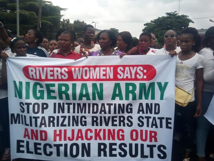 Women under different aegis staged protests against and for INEC and the Army sparking fears of a possible clash between the groups.