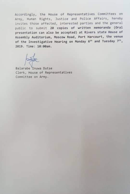 The House of Representatives Joint Committees on Army, Human Rights, Justice and Police Affairs, say it will investigate the atrocities committed by security agents during the 2019 General Elections in Rivers State.