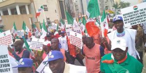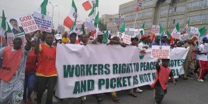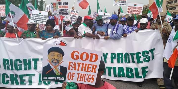 The disagreement between the Minister of Labour, Chris Ngige and the Nigerian Labour Congress, NLC, has taken a new dimension as labour leaders staged a protest against the minister in Abuja on Monday.