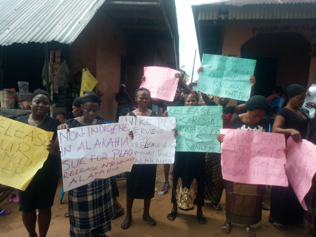 Women from Alakahia community in Obio-Akpor Local Government Area of Rivers State, on Monday, took to the streets to protest the arrest of their newly elected Paramount ruler, Eze Vincent Igwe.
