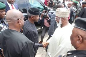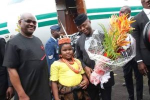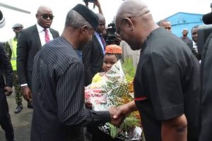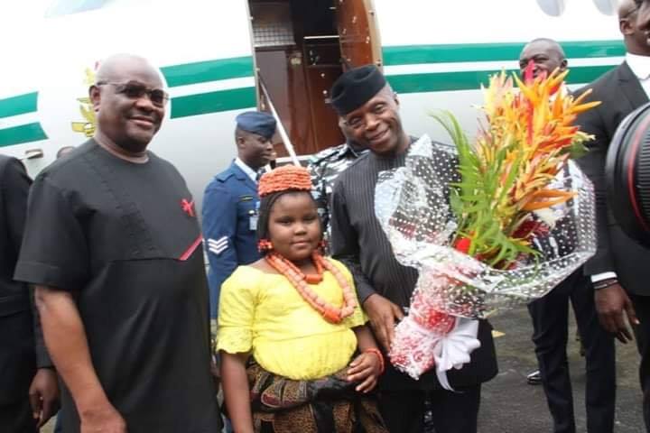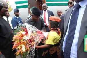 Vice-President Yemi Osinbajo on Friday arrived NAF Base Port Harcourt for the Commissioning of Africa Circle Pollution Management Limited Liquid Waste Treatment at the Port Harcourt Dockyard.