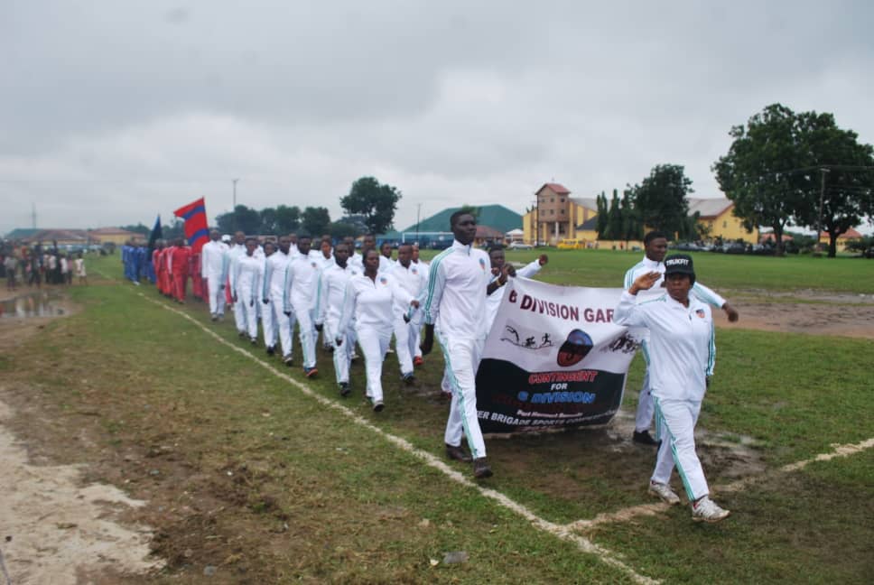 The ceremony which took place at the 6 Division Sports Ground in Port Harcourt Barracks, Rivers State, heralds several sporting activities including Football, Volleyball, Basketball and Tug-of-War between the various formations and units under the Division.