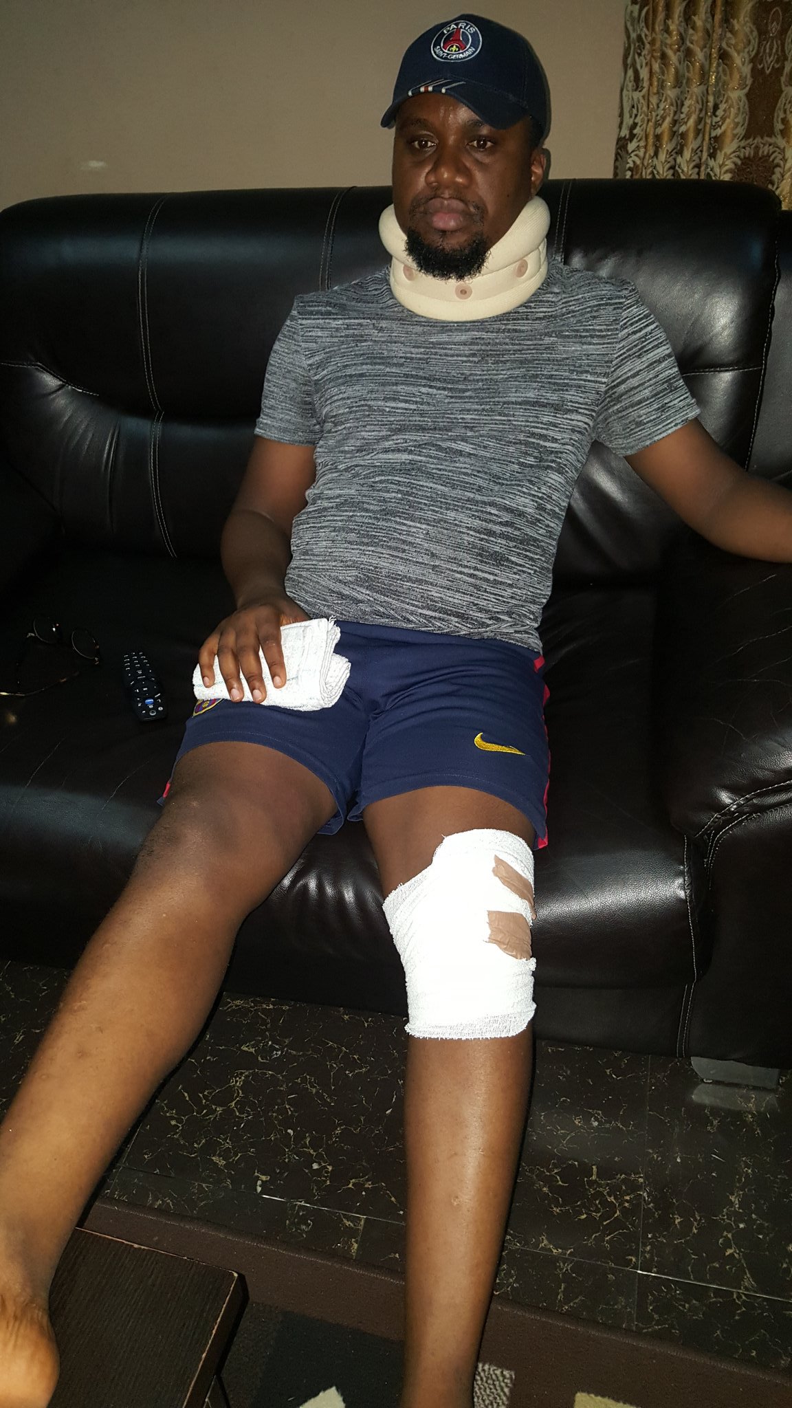“I was given the beating of my life right on the road. They started by smashing my knees repeatedly with wooden bars. As I type this, my left knee is swollen and my right knee seriously bruised. I have pains in my head, neck and back.