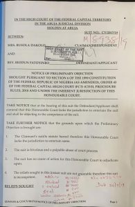 Senior pastor of the Commonwealth of Zion Assembly (COZA), Biodun Fatoyinbo, has asked the FCT High Court to dismiss the suit filed by Photographer, Mrs Busola Dakola.