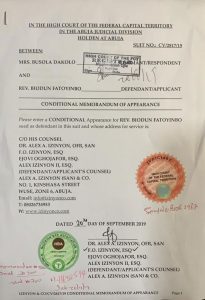 In a writ filed on her behalf by her lawyer, Pelumi Olajengbesi and Co of Law corridor, she demanded that Pastor Fatoyinbo pens a clearly worded apology on the front page of at least two national newspapers and two national television stations for seven days running consecutively.