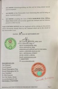 Mrs Dakolo also demanded that a cost of action estimated at the sum of N10,000,000 (ten million naira) be paid.