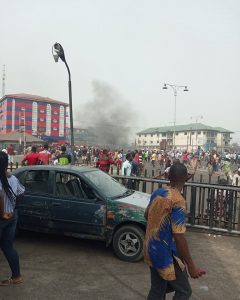 The protesters who marched to the Mile 1 police station were met with force as police fire teargas canisters and live rounds to disperse them.