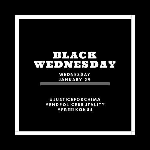 Everyone is to wear black all day and tweet a picture with the hashtag #JusticeForChima #EndPoliceBrutality.