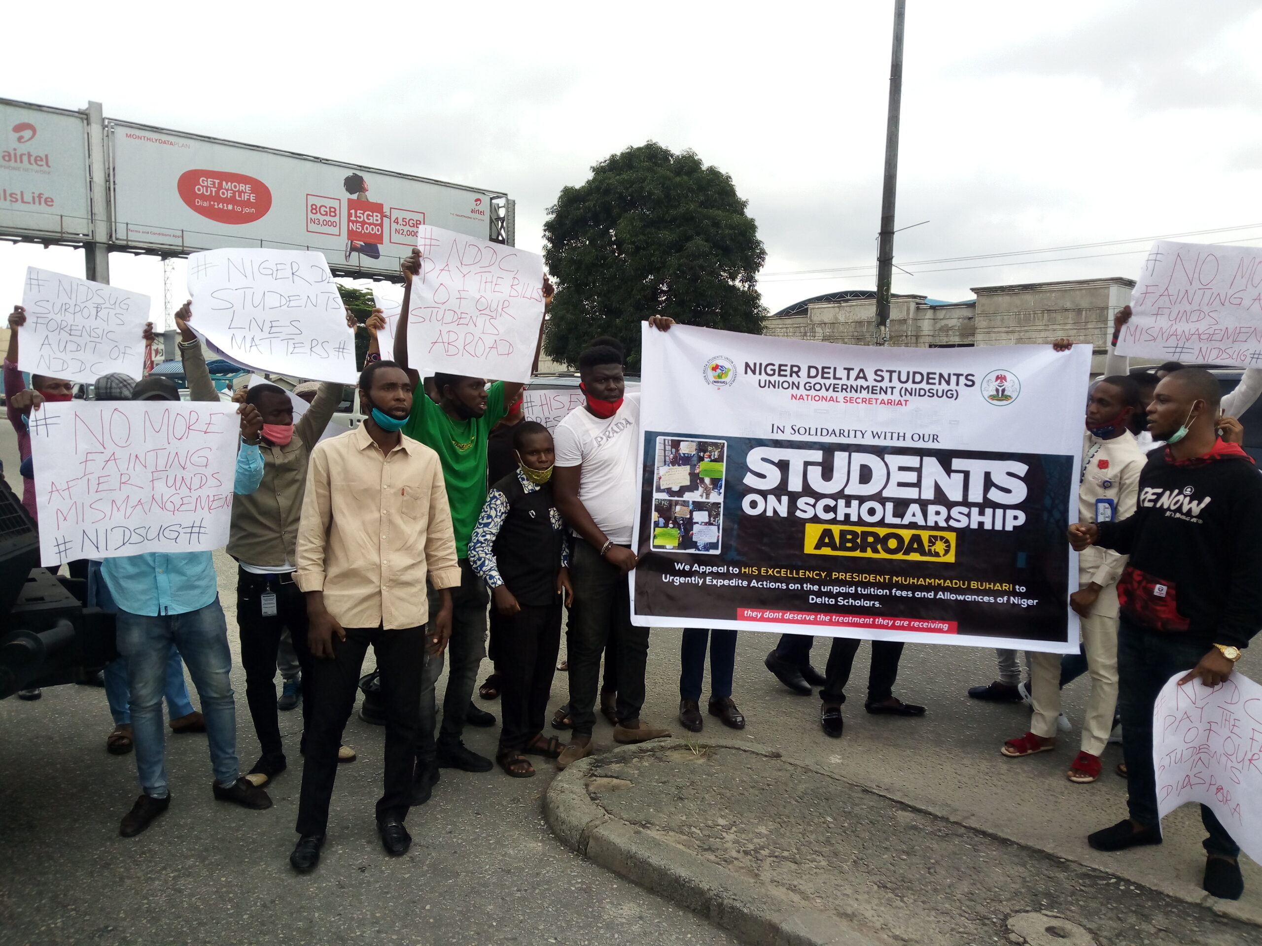 “The National Executive of the Niger Delta Students Union Government NIDSUG have decided to issue the Niger Delta Development Commission NDDC a five-day ultimatum to pay the school fees of the students on foreign scholarship. Failure to do so we will come back and occupy this place”.