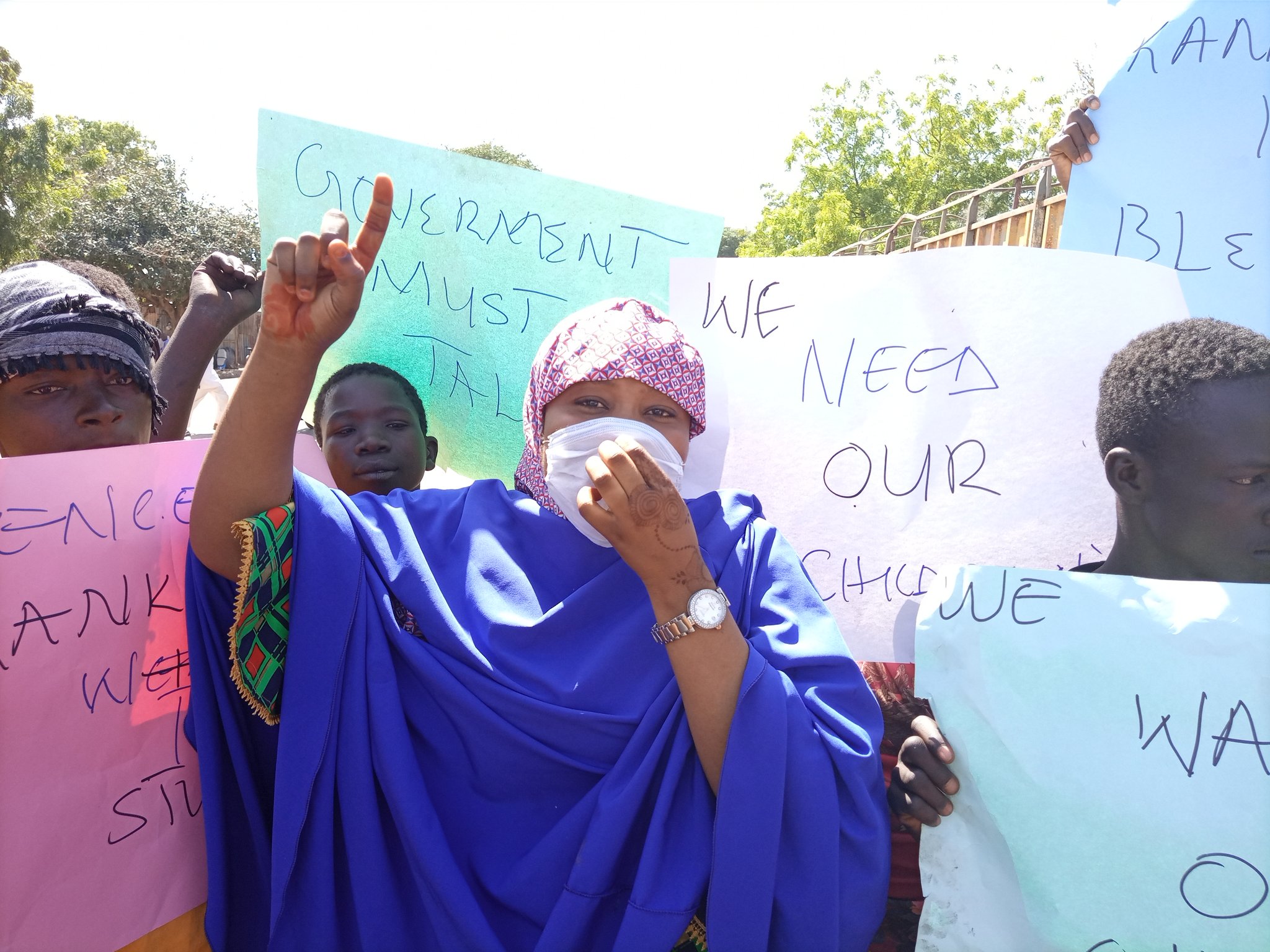 The protesters also chanted songs seeking the rescue of the abducted students.