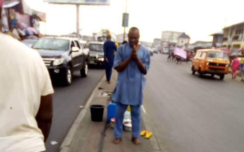 Vehicles slowed down a bit when they got to the spot as every driver wanted to catch a glimpse of the praying/meditating mad man, who appeared to be in his early fifties.