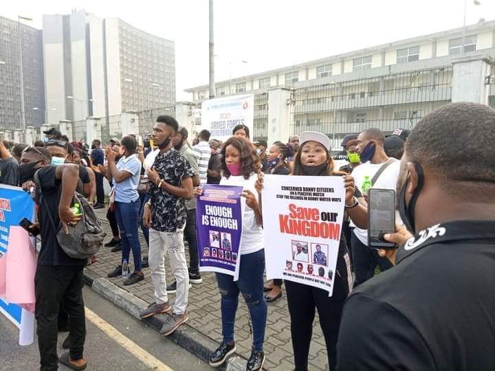 Youths from the Bonny Island have begun a protest in Port Harcourt over the increasing state of insecurity on the Bonny waterways.