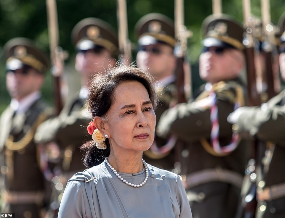 The NLD released a statement they said had been written by Suu Kyi before her arrest, which said: ‘The actions of the military are actions to put the country back under a dictatorship.