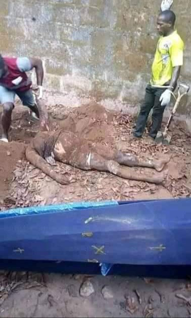 The police exhumed the body of the dead woman which was reportedly buried by the accused in a shallow grave within the compound.