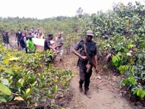 SP Bako and his team were seen evacuating the body from the site of discovery.