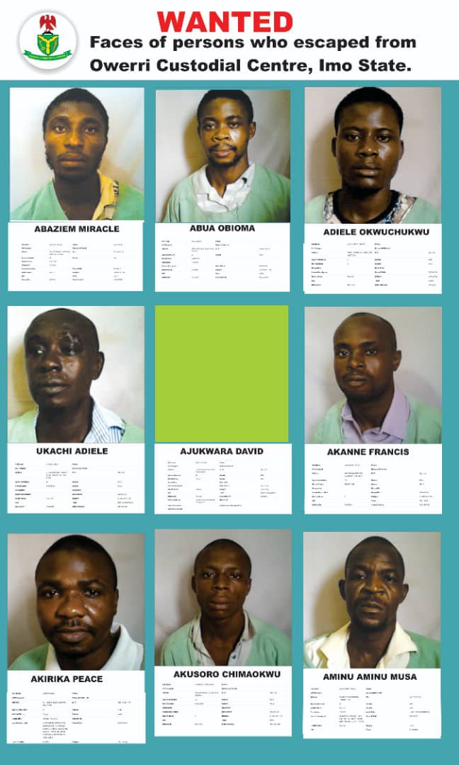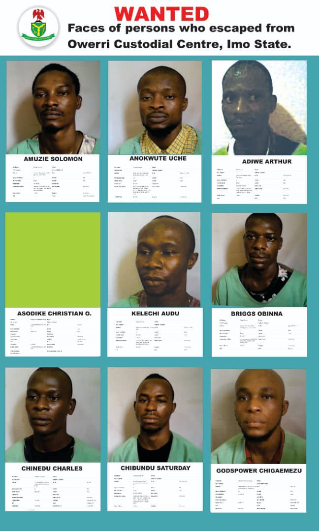 “Faces of persons who escaped from Owerri Custodial Centre, Imo State.